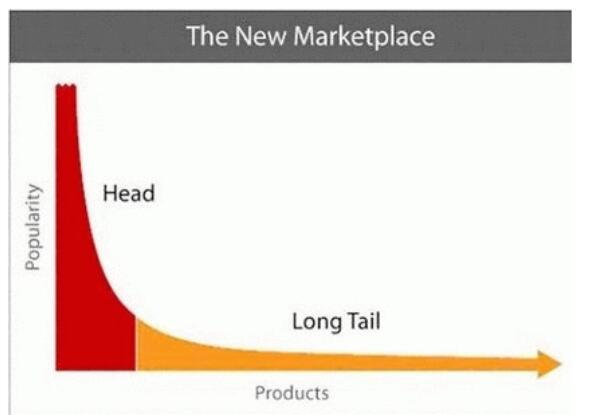 首先承认二八原则的存在,但对于一些价格以至于个人都可以生产的商品,如果商品的销量成本足够低(比如网络销售),那么那些以前看似需求极地的产品,只要有销售,都会有人买的。这些销售量不高的产品,因为其的品种量足大,所以他们所占的市场份额可以和主流产品的市场份额相比,甚至更大。